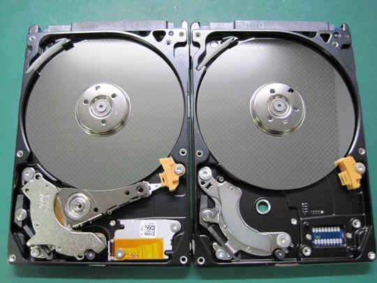 開盤的目的是為了更換配件比如磁頭,而磁頭是沒有單賣的,開一個盤就要毀掉一個同型號的盤,拿最常見WD 藍標系列(下圖)舉例,將左邊備件盤磁頭更換到右邊故障盤就OK了,聽起來很簡單是不是?然而一個磁頭換上就立刻嗖嗖讀數據是極為罕見的事情,往往因為故障盤盤片劃傷等問題,新換的磁頭會被打壞,這時候只能再更換新的磁頭,也就是再拆掉一個同型號的盤....